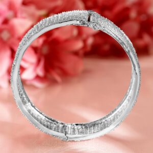 Bracelet : This Rhodium-plated bangle-style bracelet features an intricate cubic zirconia-studded design for a premium and elegant look. Its openable feature adds convenience without compromising on style. Occasion : Bring your style to a whole new level with this handcrafted piece of jewellery. When you’re celebrating a special Occasion : – a birthday, wedding, or personal milestone – this piece adds that extra something that makes us feel special and looking our best. Material : & Care Dimension : Size : 2.6 Net Quantity : 1 Bracelet Net Weight: – Material :Brass Care Label : It is advisable to avoid contact with water and organic chemicals i.e. perfume sprays. Store jewellery in airtight box. After use, wipe the jewellery with soft cotton cloth.