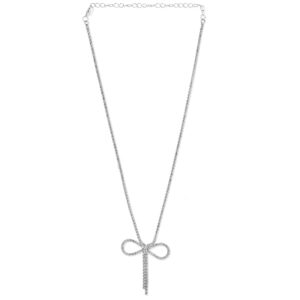 Rhodium Plated AD & Cubic Zirconia Studded Bow Design Statement Necklace