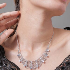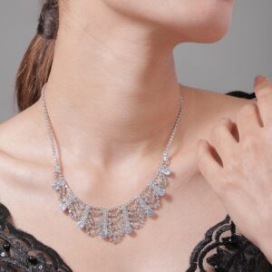 Rhodium Plated AD & Cubic Zirconia Studded Luxurious Draped Statement Necklace – Silver