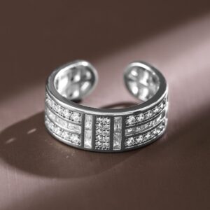 Ring : Elevate your style with this rhodium-plated openable adjustable ring, featuring baguette and pavé cubic zirconia detailing in a sleek, contemporary design for a luxurious statement look. Occasion : Bring your style to a whole new level with this handcrafted piece of jewellery. When you’re celebrating a special Occasion : – a birthday, wedding, or personal milestone – this piece adds that extra something that makes us feel special and looking our best. Material : & Care Dimension : Size : 6 Net Weight: 3.52 g Net Quantity : 1Ring Material : Brass Care Label : It is advisable to avoid contact with water and organic chemicals i.e. perfume sprays. Store jewellery in airtight box. After use, wipe the jewellery with soft cotton cloth.