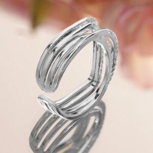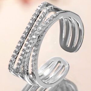Ring : This Rhodium Plated adjustable ring with triple open rows studded with sparkling crystals, crafted in brass for a modern, elegant look perfect for daily wear or parties. Perfect for Celebrations & Gifting: Whether worn for a festive occasion, party, or evening soiree, this standout ring enhances any look and also makes for a luxurious gift option. Material : & Care Dimension : Ring Size : Adjustable/Openable Ring Material : Brass Net Quantity : 1 Ring Net Weight : 12 Gram Care Label : It is advisable to avoid contact with water and organic chemicals i.e. perfume sprays. Store jewellery in airtight box. After use, wipe the jewellery with soft cotton cloth.