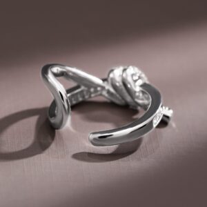 Ring : Add a touch of sophistication with this rhodium-plated openable adjustable ring, featuring a stylish knot design with baguette and pavé cubic zirconia, exuding elegance and charm. Occasion : Bring your style to a whole new level with this handcrafted piece of jewellery. When you’re celebrating a special Occasion : – a birthday, wedding, or personal milestone – this piece adds that extra something that makes us feel special and looking our best. Material : & Care Dimension : Size : 6 Net Weight: 4.92g Net Quantity : 1Ring Material :Brass Care Label : It is advisable to avoid contact with water and organic chemicals i.e. perfume sprays. Store jewellery in airtight box. After use, wipe the jewellery with soft cotton cloth.