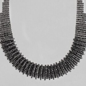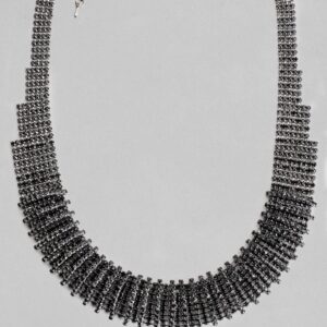 Rhodium Plated Y-shaped long necklace featuring Crystal AD and Cubic Zirconia stones. Its layered design exudes elegance, perfect for statement wear that dazzles at any event. Occasion : Bring your style to a whole new level with this handcrafted piece of jewellery. When you’re celebrating a special Occasion : – a birthday, wedding, or personal milestone – this piece adds that extra something that makes us feel special and looking our best. Material & Care Dimension : Length : Necklace : 34 cm Dimension : Width : Necklace : 2.3 cm Material : Brass Net Quantity : 1 Necklace Care Label : It is advisable to avoid contact with water and organic chemicals i.e. perfume sprays. Store jewellery in airtight box. After use, wipe the jewellery with soft cotton cloth.