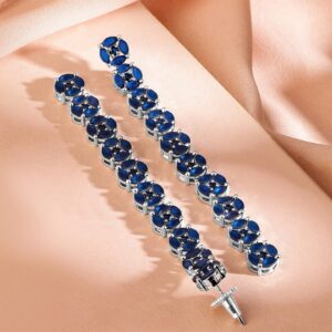 Rhodium-Plated Blue Cubic Zirconia Studded Drop Earrings – Blue
