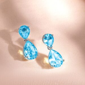 Jewellery Set : This rhodium-plated necklace set showcases dazzling blue topaz-colored cubic zirconia stones in a stunning pear-shaped design, complete with matching earrings for a sophisticated look. Occasion : Bring your style to a whole new level with this handcrafted piece of jewellery. When you’re celebrating a special Occasion : – a birthday, wedding, or personal milestone – this piece adds that extra something that makes us feel special and looking our best. Material : & Care Dimension : Length : 30 cm / 2.3 cm, Width: 5 cm / 2.3 cm Net Quantity : 1 Necklace & 2 Earrings Net Weight: 25.5 g Material :Brass Care Label : It is advisable to avoid contact with water and organic chemicals i.e. perfume sprays. Store jewellery in airtight box. After use, wipe the jewellery with soft cotton cloth.