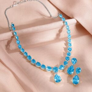 Be the first to review “Rhodium-Plated Blue Topaz Cubic Zirconia Studded Necklace Set – Sky Blue”