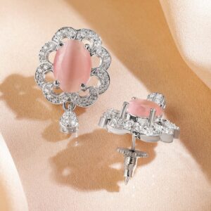 Be the first to review “Rhodium-Plated Blush Pink Stone & White Cubic Zirconia Drop Stud Earrings with Floral Frame”