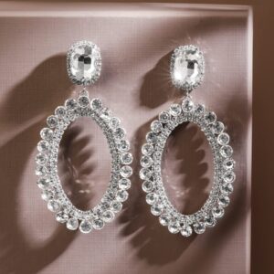 Be the first to review “Rhodium-Plated Crystal AD & Cubic Zirconia Studded Oval Drop Earrings – Silver”