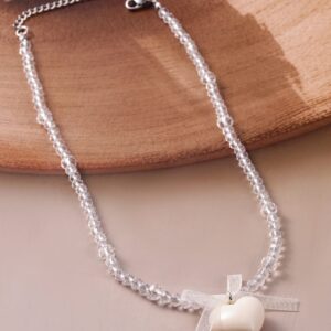 Necklace and Chains : Discover the elegance of Rhodium Plated Crystal Beaded Necklace with Heart Pendant and Bow Detailing. This piece combines quality craftsmanship with a timeless design, making it perfect for any occasion. Elevate your style effortlessly and enjoy compliments on your refined taste. A must-have addition to your jewelry collection. Occasion : Bring your style to a whole new level with this handcrafted piece of jewellery. When you’re celebrating a special Occasion : – a birthday, wedding, or personal milestone – this piece adds that extra something that makes us feel special and looking our best. Material : & Care Dimension : Necklace and Chains Size :Length : 40 cm, Width : 4 cm Material :Brass Weight : 12.06g Net Qnty : 1 Necklace Care Label : It is advisable to avoid contact with water and organic chemicals i.e. perfume sprays. Store jewellery in airtight box. After use, wipe the jewellery with soft cotton cloth.