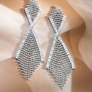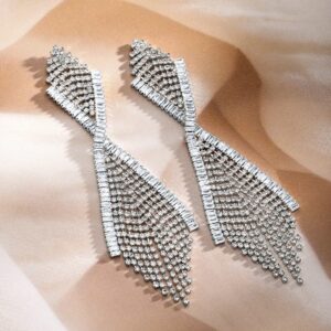 Earrings : These Rhodium-Plated Crystal Cascade Dangle Earrings feature a stunning design with sparkling crystals, creating a cascading effect. Elegant and eye-catching, they add a touch of sophistication to any outfit. Occasion : Bring your style to a whole new level with this handcrafted piece of jewellery. When you’re celebrating a special Occasion : – a birthday, wedding, or personal milestone – this piece adds that extra something that makes us feel special and looking our best. Material : & Care Dimension : Length : 10.2 cm, Width: 3.2 cm Net Weight: 18.80 g Net Quantity : 1 Pair Of Earrings Material :Brass Care Label : It is advisable to avoid contact with water and organic chemicals i.e. perfume sprays. Store jewellery in airtight box. After use, wipe the jewellery with soft cotton cloth.