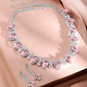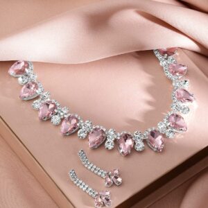 Jewellery Set : A stunning rhodium-plated necklace set featuring crystal pink AD stones and shimmering cubic zirconia in an intricate teardrop design. Paired with matching earrings, this piece exudes elegance and femininity. Occasion : Bring your style to a whole new level with this handcrafted piece of jewellery. When you’re celebrating a special Occasion : – a birthday, parties, wedding, festive or personal milestone – this piece adds that extra something that makes us feel special and looking our best. Material & Care Dimension : Length : 20 cm Width : 1.6 cm Material : Brass Care Label : It is advisable to avoid contact with water and organic chemicals i.e. perfume sprays. Store jewellery in airtight box. After use, wipe the jewellery with soft cotton cloth.
