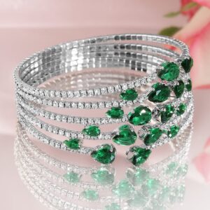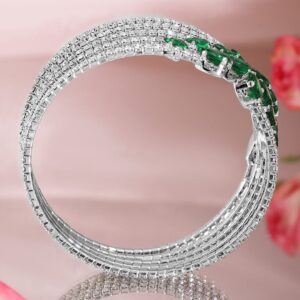 Bracelet : This exquisite piece, ‘ Rhodium-Plated Crystal Stone Studded Cuff Bracelet’, is a perfect blend of elegance and craftsmanship. Designed to captivate, it reflects timeless beauty and intricate detailing. Ideal for special occasions, this accessory adds a touch of sophistication to your look. Made with high-quality materials, it guarantees durability and comfort. Elevate your style with this stunning creation, making you stand out effortlessly. Occasion : Bring your style to a whole new level with this handcrafted piece of jewellery. When you’re celebrating a special Occasion : – a birthday, wedding, or personal milestone – this piece adds that extra something that makes us feel special and looking our best. Material : & Care Dimension : Length : -Adjustable Material : Brass Weight : 22 g Net Qnty : 1 Bracelet Care Label : It is advisable to avoid contact with water and organic chemicals i.e. perfume sprays. Store jewellery in airtight box. After use, wipe the jewellery with soft cotton cloth.