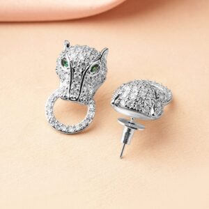 Earrings : Fierce and stylish, these rhodium-plated stud earrings showcase a panther design studded with cubic zirconia and emerald-like green accents for bold sophistication. Occasion : Bring your style to a whole new level with this handcrafted piece of jewellery. When you’re celebrating a special Occasion : – a birthday, wedding, or personal milestone – this piece adds that extra something that makes us feel special and looking our best. Material : & Care Dimension : Length : 2.5 cm, Width: 1.5 cm Net Weight: 11.10 g Net Quantity : 1 Pair Of Earrings Material :Brass Care Label : It is advisable to avoid contact with water and organic chemicals i.e. perfume sprays. Store jewellery in airtight box. After use, wipe the jewellery with soft cotton cloth.