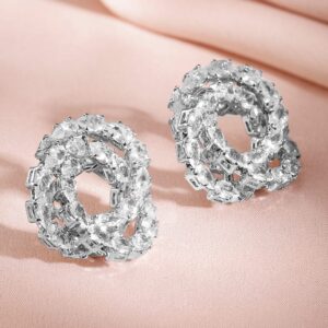 Earrings : The Rhodium Plated Cubic Zirconia Studded Stud Earrings feature a classic stud design with a rhodium-plated finish and dazzling cubic zirconia stones, offering a timeless and elegant look for any occasion. Occasion : Bring your style to a whole new level with this handcrafted piece of jewellery. When you’re celebrating a special Occasion : – a birthday, wedding, or personal milestone – this piece adds that extra something that makes us feel special and looking our best. Material : & Care Dimension : Length : 2.5 cm, Width: 2.6 cm Net Weight: 14.93 g Net Quantity : 1 Pair Of Earrings Material :Brass Care Label : It is advisable to avoid contact with water and organic chemicals i.e. perfume sprays. Store jewellery in airtight box. After use, wipe the jewellery with soft cotton cloth.