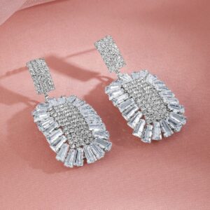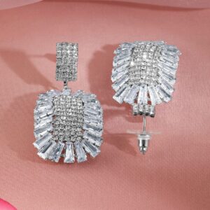 Earrings : The Rhodium Plated Cubic Zirconia Studded Drop Earrings feature a sleek rhodium-plated design with sparkling cubic zirconia stones, offering a sophisticated and elegant drop-style perfect for any special occasion. Occasion : Bring your style to a whole new level with this handcrafted piece of jewellery. When you’re celebrating a special Occasion : – a birthday, wedding, or personal milestone – this piece adds that extra something that makes us feel special and looking our best. Material : & Care Dimension : Length : 4.9 cm, Width: 2 cm Net Weight: 13.71 g Net Quantity : 1 Pair Of Earrings Material :Brass Care Label : It is advisable to avoid contact with water and organic chemicals i.e. perfume sprays. Store jewellery in airtight box. After use, wipe the jewellery with soft cotton cloth.