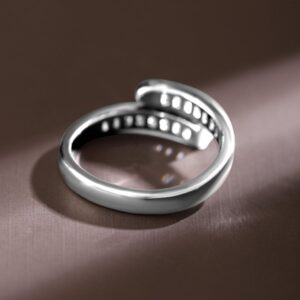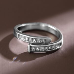 Ring : This rhodium-plated openable adjustable ring features a sleek minimalist design with sparkling cubic zirconia stones, making it a sophisticated and versatile jewelry essential. Occasion : Bring your style to a whole new level with this handcrafted piece of jewellery. When you’re celebrating a special Occasion : – a birthday, wedding, or personal milestone – this piece adds that extra something that makes us feel special and looking our best. Material : & Care Dimension : Size : 6 Net Weight: 2.69 g Net Quantity : 1Ring Material :Brass Care Label : It is advisable to avoid contact with water and organic chemicals i.e. perfume sprays. Store jewellery in airtight box. After use, wipe the jewellery with soft cotton cloth.