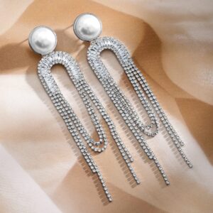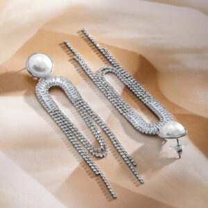 Rhodium Plated Cubic Zirconia Studded Tassel Drop Earrings – Silver