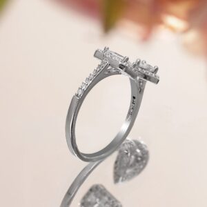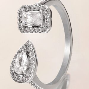 Ring : This open rhodium-plated ring features pear and emerald-cut white Cubic Zirconia, set on a slim adjustable band—offering modern sparkle perfect for everyday elegance or gifting. Perfect for Everyday Glam: Whether you’re heading to brunch, a casual meet-up, or the office, this subtle sparkle ring elevates any outfit with minimal effort and maximum elegance. Material : & Care Dimension : Adjustable Ring Net Weight: 18 Gram Net Quantity : 1 Ring Material : Brass Care Label : It is advisable to avoid contact with water and organic chemicals i.e. perfume sprays. Store jewellery in airtight box. After use, wipe the jewellery with soft cotton cloth.