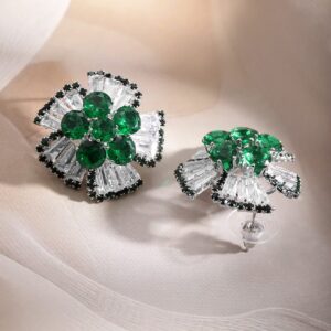 Be the first to review “Rhodium-Plated Emerald and Crystal Floral Stud Earrings – Gold”