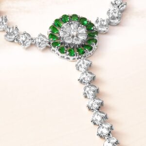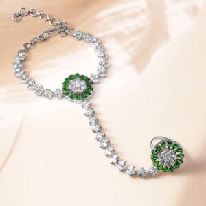 Bracelet : Discover elegance with the Rhodium-Plated design, meticulously crafted for those who cherish luxury. This piece features Ruby and Emerald stones for an eye-catching sparkle, making it perfect for special occasions. With a blend of high-quality materials and exquisite design, it promises both durability and style. The versatile look can complement a variety of outfits, adding a touch of sophistication. A must-have for enhancing your accessory collection with timeless elegance. Occasion : Bring your style to a whole new level with this handcrafted piece of jewellery. When you’re celebrating a special Occasion : – a birthday, wedding, or personal milestone – this piece adds that extra something that makes us feel special and looking our best. Material : & Care Dimension : Length : 11.5 cm, Width: 2.6 size Material :Alloy Care Label : It is advisable to avoid contact with water and organic chemicals i.e. perfume sprays. Store jewellery in airtight box. After use, wipe the jewellery with soft cotton cloth.
