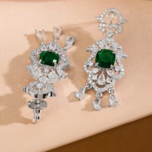 Jewellery Set : This rhodium-plated brass jewellery set features a peacock-inspired design with emerald green center stones and white AAA cubic zirconia—crafted for parties, evening wear, and special occasions. Occasion Styling: A statement choice for parties, cocktail evenings, receptions, or festive dinners. It pairs beautifully with gowns, contemporary sarees, and designer outfits for a glamorous night-out look. Material & Care Dimension : Length : Necklace : 19 cm, Earrings : 2.5 cm Dimension : Width : Necklace : 4.5 cm, Earrings : 1.8 cm Net Weight : 36.98 Gram Net Quantity : 1 Necklace & 1 Pair of Earrings Material : Brass Care Label : It is advisable to avoid contact with water and organic chemicals i.e. perfume sprays. Store jewellery in airtight box. After use, wipe the jewellery with soft cotton cloth.