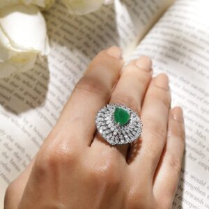 Rings: One of the most versatile forms of ornate designs that goes well with every style and personality. Wear one of these and you do not have to worry about any other accessory. Occasion : Bring your style to a whole new level with this handcrafted piece of jewellery. When you’re celebrating a special Occasion : – a birthday, wedding, or personal milestone – this piece adds that extra something that makes us feel special and looking our best. Material : & Care Dimension :Adjustable Material :Rhodium Plated Care Label : It is advisable to avoid contact with water and organic chemicals i.e. perfume sprays. Store jewellery in airtight box. After use, wipe the jewellery with soft cotton cloth.