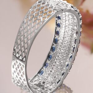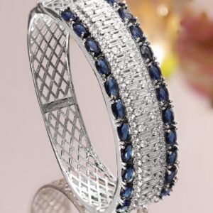 Bracelet : Crafted in high-quality brass, this rhodium-plated bracelet features pastel pink & green stones with fine cubic zirconia detailing—ideal for parties, weddings, or festive celebrations. Gifting-Ready Glam : A refined gift option for birthdays, Rakhi, anniversaries, or festive occasions—this bracelet offers a perfect balance of charm, color, and timeless design. Material : & Care Dimension : Width: 1.7 cm Net Weight: 25.86 Gram Net Quantity : 1 Bracelet Material : Brass Care Label : It is advisable to avoid contact with water and organic chemicals i.e. perfume sprays. Store jewellery in airtight box. After use, wipe the jewellery with soft cotton cloth.