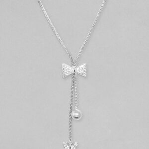 It’s a necklace for the queens! Exude the royal vibe with this AD studded necklace this necklace is crafted from rhodium plated brass, stones. Occasion : Bring your style to a whole new level with this handcrafted piece of jewellery. When you’re celebrating a special Occasion : – a birthday, wedding, or personal milestone – this piece adds that extra something that makes us feel special and looking our best. Material & Care Dimension: Length 64 cm; Width 1 cm: Material : Brass Collection : AD Care Label : It is advisable to avoid contact with water and organic chemicals i.e. perfume sprays. Store jewellery in airtight box. After use, wipe the jewellery with soft cotton cloth.