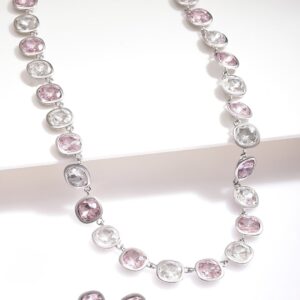Rhodium Plated Mutli Colour Princess Cut Zirconia Studded Necklace Set – Multicolor