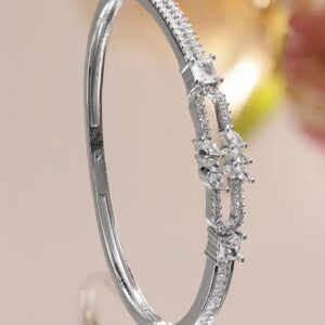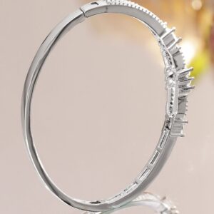 Bracelet – This rhodium-plated brass bracelet features a modern open-link design with marquise, princess, and baguette-cut cubic zirconia—perfect for elegant daily wear, festive styling, or gifting. Minimal Gifting Elegance: A graceful gift for women & girls on birthdays, anniversaries, Rakhi, or festive occasions—this bracelet offers timeless sparkle in a modern design silhouette. Material : & Care Dimension : Length: 6 cm ; Width: 0.8 cm Material: Brass Net Weight: 9.09 Gram Net Quantity: 1 Bracelet Type : Openable Bracelet Care Label: It is advisable to avoid contact with water and organic chemicals i.e. perfume sprays. Store jewellery in airtight box. After use, wipe the jewellery with soft cotton cloth.