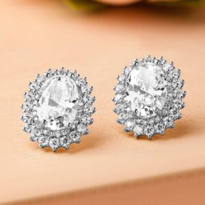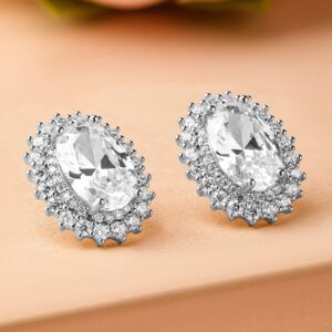 Rhodium-Plated Oval Cubic Zirconia Studded Statement Stud Earrings