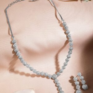 Rhodium plated Pave Zirconia Embellished sleek Jewellery set – Silver