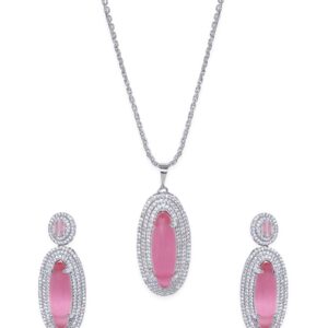 Rhodium plated Pink Crystal Zirconia studded Statement pendant Set – Silver::Pink