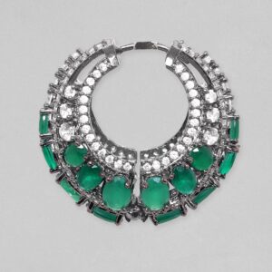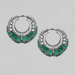 Hoop Earrings : You can never go wrong with this classic piece of jewellery. With just the right amount of charm and style, it can take you from a busy day at work to an impromptu night out with colleagues or friends. Occasion : Bring your style to a whole new level with this handcrafted piece of jewellery. When you’re celebrating a special Occasion : – a birthday, wedding, or personal milestone – this piece adds that extra something that makes us feel special and looking our best. Material : & Care Dimension :Length: 3 cm; Width 1.6 cm: Collection : AD Material: Brass Net Weight: 8 Gram Net Quantity: 1 Pair of Earrings Care Label: It is advisable to avoid contact with water and organic chemicals i.e. perfume sprays. Store jewellery in airtight box. After use, wipe the jewellery with soft cotton cloth.