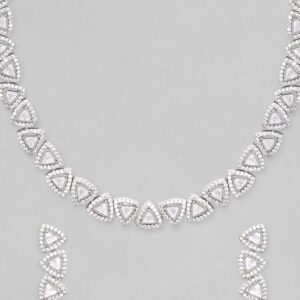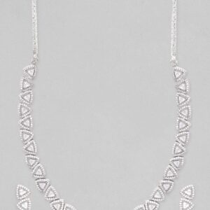 From minimalist to statement, our necklaces are multifaceted, always fashionable, and add a splash of personality to any wardrobe. Occasion : Bring your style to a whole new level with this handcrafted piece of jewellery. When you’re celebrating a special Occasion : – a birthday, wedding, or personal milestone – this piece adds that extra something that makes us feel special and looking our best. Material : & Care Dimension : Necklace 19.5 cm; Earrings 3.5 cm: Collection :AD Material: Brass Net Weight: 32 Gram Net Quantity: 1 Necklace & 1 Pair of Earrings Care Label: It is advisable to avoid contact with water and organic chemicals i.e. perfume sprays. Store jewellery in airtight box. After use, wipe the jewellery with soft cotton cloth.