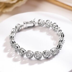 Be the first to review “Rhodium Plated Round Design Sparkling Cubic Zirconia Studded Premium Tennis Bracelet – Silver”