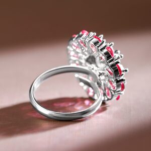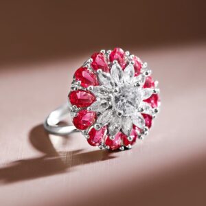 Rings : A rhodium-plated adjustable ring, featuring a radiant floral design with ruby pink and white cubic zirconia stones. This statement ring exudes elegance, sparkle, and luxurious craftsmanship. Occasion : Bring your style to a whole new level with this handcrafted piece of jewellery. When you’re celebrating a special Occasion : – a birthday, wedding, or personal milestone – this piece adds that extra something that makes us feel special and looking our best. Material : & Care Dimension : Length : U.S 8, Width: 2 w Net Weight: 8.37 g Net Quantity : 1 Rings Material :Brass Care Label : It is advisable to avoid contact with water and organic chemicals i.e. perfume sprays. Store jewellery in airtight box. After use, wipe the jewellery with soft cotton cloth.
