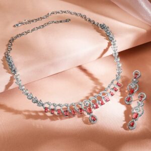 Be the first to review “Rhodium-Plated Ruby Red & White Cubic Zirconia Studded Elegant Necklace Set – Red”
