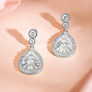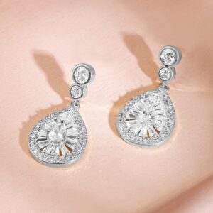 Earrings : Add a dazzling touch to your look with these rhodium-plated teardrop earrings, featuring radiant-cut cubic zirconia for unmatched brilliance and sophistication. Occasion : Bring your style to a whole new level with this handcrafted piece of jewelry. When you’re celebrating a special Occasion : – a birthday, festive, party or personal milestone – this piece adds that extra something that makes us feel special and looking our best. Material & Care Material :Brass Length : 5.3 cm, Width : 1.9 cm Weight : 5.80 gram Net Quantity : 1 Pair of Earrings Care Label : It is advisable to avoid contact with water and organic chemicals i.e. perfume sprays. Store jewellery in airtight box. After use, wipe the jewellery with soft cotton cloth.
