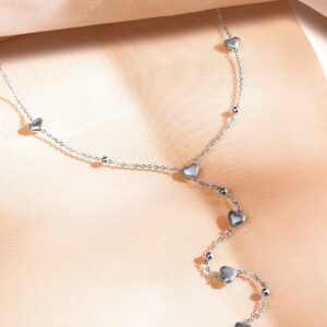 Rhodium-Plated Stainless Steel Tarnish-Free Waterproof Y-Chain Heart Charm Necklace – Silver