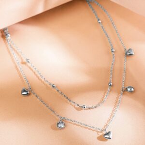 Rhodium-Plated StainlesSteel TarnishFree Waterproof DoubleLayer Heart & CZ Necklace – Silver