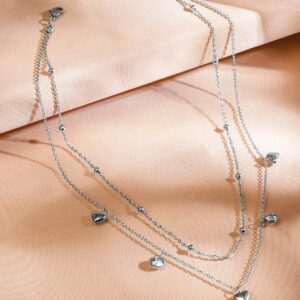 Be the first to review “Rhodium-Plated StainlesSteel TarnishFree Waterproof DoubleLayer Heart & CZ Necklace – Silver”