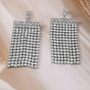 Be the first to review “Rhodium-Plated Statement Multi-Strand Cubic Zirconia Dangle Earrings – Silver”