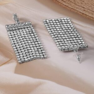 Rhodium-Plated Statement Multi-Strand Cubic Zirconia Dangle Earrings – Silver