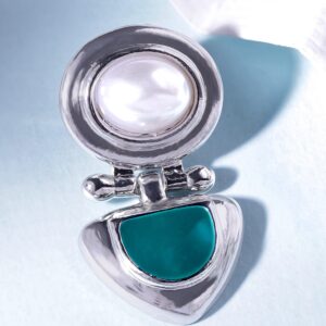 Be the first to review “Rhodium-Plated Statement Stud Earrings with Green Stone & Pearl Detailing”
