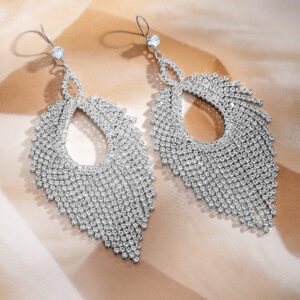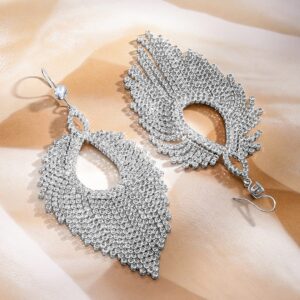 Earrings : These Rhodium-Plated Teardrop Crystal Dangle Earrings feature a stunning teardrop-shaped crystal suspended from a sleek rhodium-plated setting. Their elegant design adds a touch of sophistication and sparkle to any outfit. Occasion : Bring your style to a whole new level with this handcrafted piece of jewellery. When you’re celebrating a special Occasion : – a birthday, wedding, or personal milestone – this piece adds that extra something that makes us feel special and looking our best. Material : & Care Dimension : Length : 9.8 cm, Width: 4.9 cm Net Weight: 29.86 g Net Quantity : 1 Pair Of Earrings Material :Brass Care Label : It is advisable to avoid contact with water and organic chemicals i.e. perfume sprays. Store jewellery in airtight box. After use, wipe the jewellery with soft cotton cloth.