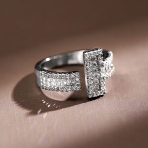 Ring : This demi-fine openable and adjustable ring is rhodium-plated and studded with white cubic zirconia stones. Occasion : Bring your style to a whole new level with this handcrafted piece of jewellery. When you’re celebrating a special Occasion : – a birthday, wedding, or personal milestone – this piece adds that extra something that makes us feel special and looking our best. Material : & Care Dimension : Adjustable Net Weight: 6.5 g Net Quantity : 1 Ring Material : Brass Care Label : It is advisable to avoid contact with water and organic chemicals i.e. perfume sprays. Store jewellery in airtight box. After use, wipe the jewellery with soft cotton cloth.