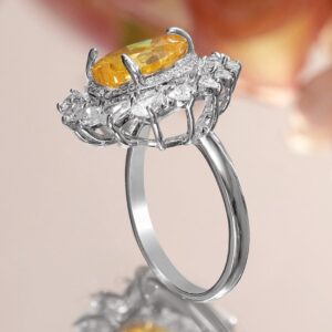 Be the first to review “Rhodium-Plated Yellow Sapphire & Cubic Zirconia Heart Halo Statement Ring”