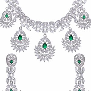 Be the first to review “Rhodium plated Zirconia studded Statement Drop Detail Choker Necklace Set – Silver::Green”