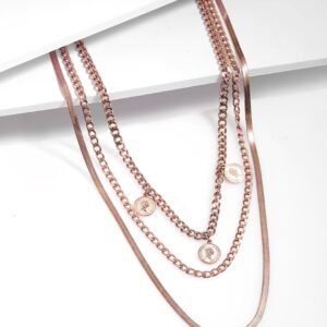 It’s a rose gold-layered necklace fit for the queens! Exude the royal vibe with this stone-studded jewellery set. It consists of a necklace, and there is also a also a coin motif pendant attached. Occasion : Bring your style to a whole new level with this handcrafted piece of jewellery. When you’re celebrating a special occasion—a birthday, wedding, or personal milestone this piece adds that extra something that makes us feel special and looking our best. Material : & Care Dimensions: : Necklace Length 50 cm; Necklace Width 1 cm Material : Brass Weight : 28.56g Net Qnty : 1 Necklace Care Label : It is advisable to avoid contact with water and organic chemicals i.e. perfume sprays. Store jewellery in airtight box. After use, wipe the jewellery with soft cotton cloth
